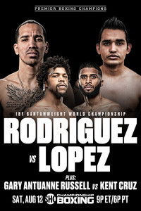 Former world champion Emmanuel Rodriguez takes on streaking contender Melvin Lopez for a vacant 118-pound title in the main event from MGM National Harbor in Maryland. Rodriguez defeated Gary Antonio Russell last October to put himself back in position to fight for a title. Lopez has won eight straight fights. Plus, rising 140-pound star Gary Antuanne Russell faces undefeated Kent Cruz and sensational top prospect Travon Marshall duels unbeaten contender Gabriel Maestre. Live on SHOWTIME.| Status: | Released (2023-08-12) |