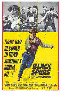 "Santee Turns Bounty Hunter" Black Spurs is directed by R.G. Springsteen and written by Steve Fisher. It stars Rory Calhoun, Linda Darnell, Lon Chaney Junior, Terry Moore, Bruce Cabot, James Best, DeForest Kelly and Scott Brady. Music is by Jimmie Haskel and Technicolor/Techniscop ....