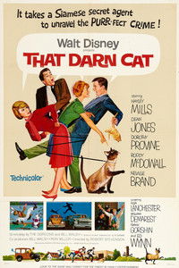 What time is it Kitty Kat? That Darn Cat! is out of Disney Productions and directed by Robert Stevenson. Collectively written by Bill Walsh and The Gordons (Mildred & Gordon), it stars Hayley Mills, Dean Jones, Dorothy Provine, Roddy McDowall, Neville Brand and Frank Gorshin. Mu ....