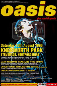 Concert footage of British rock band Oasis performing the second of two record breaking gigs at Knebworth Park in Hertfordshire, England as part of the UK summer leg of their 1996 world tour. Oasis live at Knebworth park 1996 the two gigs broke box office records when one in every 20 people in the UK applied for tickets. They have since gone into the history books as era-defining concerts. The gigs came during Oasis' world tour for '(What's The Story) Morning Glory?'| Status: | Released (1996-08-11) |