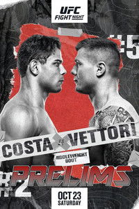 Paulo Costa vs. Marvin Vettori (Middleweight) Grant Dawson vs. Rick Glenn (Lightweight) Jessica-Rose Clark vs. Joselyne Edwards (Bantamweight) Alex Caceres vs. Seung Woo Choi (Featherweight) Dwight Grant vs. Francisco Trinaldo (Welterweight) Nicolae Negumereanu vs. Ike Villanueva (Light Heavyweight)| Status: | Released (2021-10-23) |